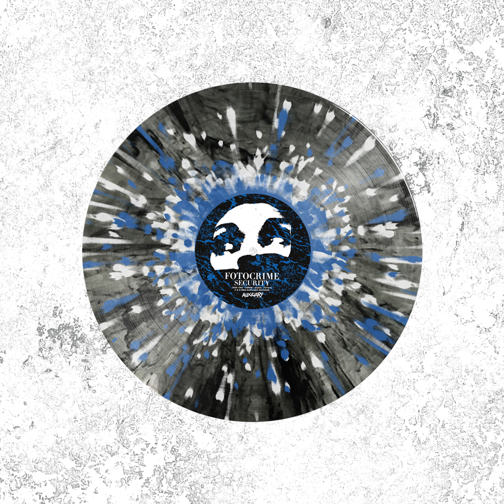 FOTOCRIME Security 12" Vinyl LP AUX25 on black/silver swirl with blue/white splatter color vinyl, limited edition of 100. Estimated to ship early March 2026.